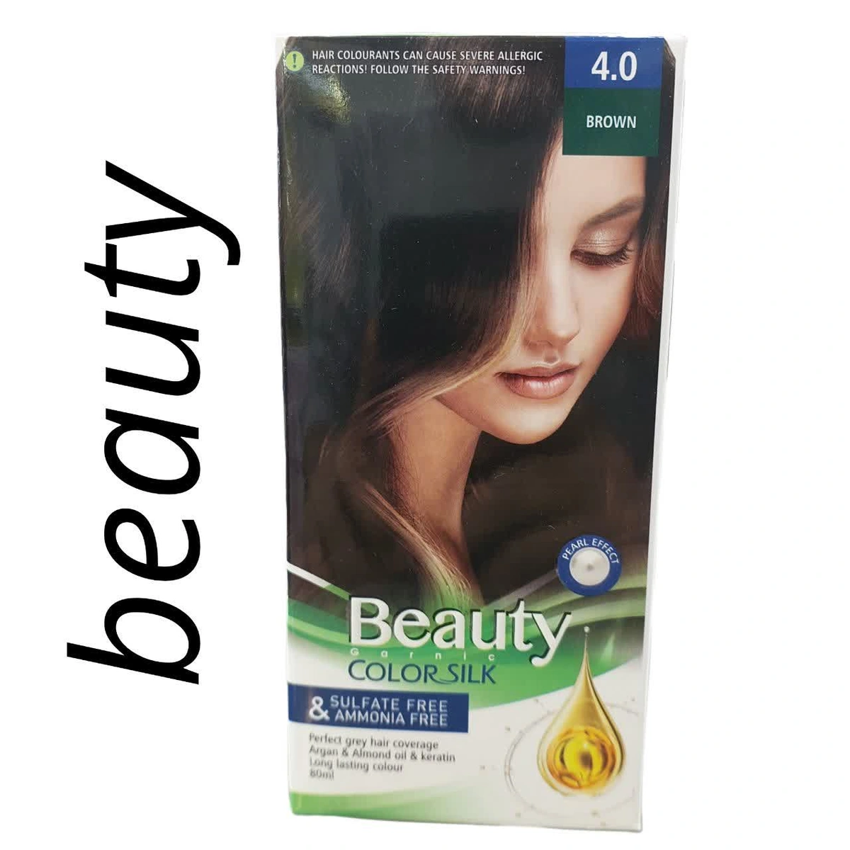 کیت رنگ مو زنانه بیوتی قهوه ای طبیعی کیت شماره ۴/۰ بدون آمونیاک و سولفات محصولی عالی برای رنگ کردن موها بدون آسیب است.برای موهای حساس و آسیب دیده مناسب است. دارای روغن آرگان،روغن بادام و کراتین است که برای تقویت و نرم کردن مو مناسب است . این کیت شامل رنگ مو با حجم ۸۰ میل و اکسیدان با حجم ۱۲۰ میل ،دستکش یکبارمصرف،راهنمای استفاده ،ساشه ماسک فاقد سولفات می باشد. آبرسان ،بازسازنده و ترمیم کننده تارهای مو ،تقویت کننده و نرم کننده ساقه مو،ضدالتهاب ،ضدسوزش و خارش برای خانم های باردار قابل استفاده است.